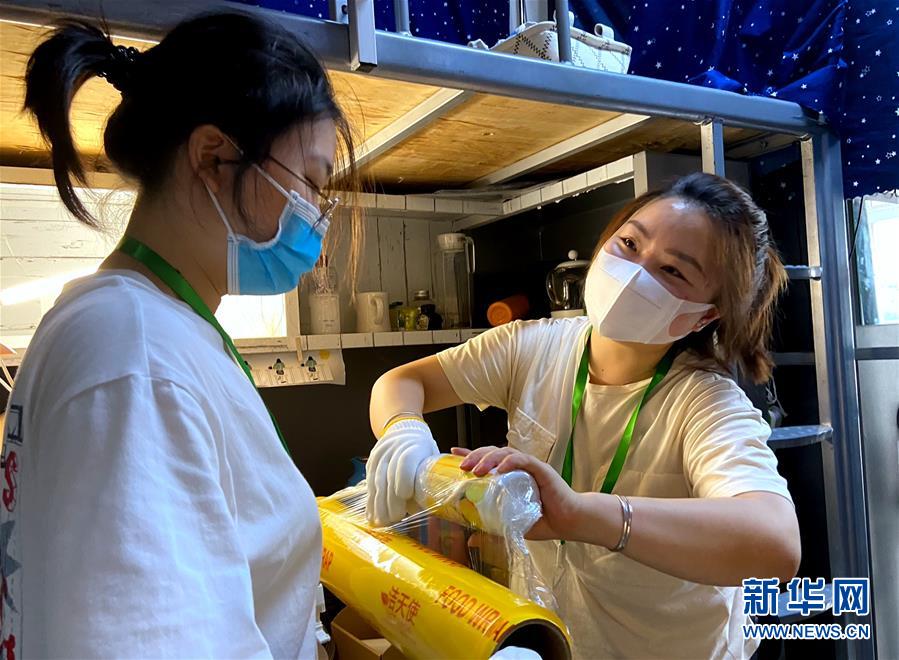 7月1日,在北理工學生宿舍,兩名輔導員在為畢業(yè)生打包行李。6月29日起,北京理工大學教職員工開始為2020屆6000多名需要打包的畢業(yè)生集中進行行李打包、郵寄和留置物品存放工作。經過提前與畢業(yè)生“一對一”溝通,老師們耐心細致地通過手機“直播”打包行李的全過程,與每一個同學認真核對其個人物品,細心收納擺放、整理密封、搬運寄送,讓不能返校的畢業(yè)生們安心、放心。新華社記者魏夢佳攝
