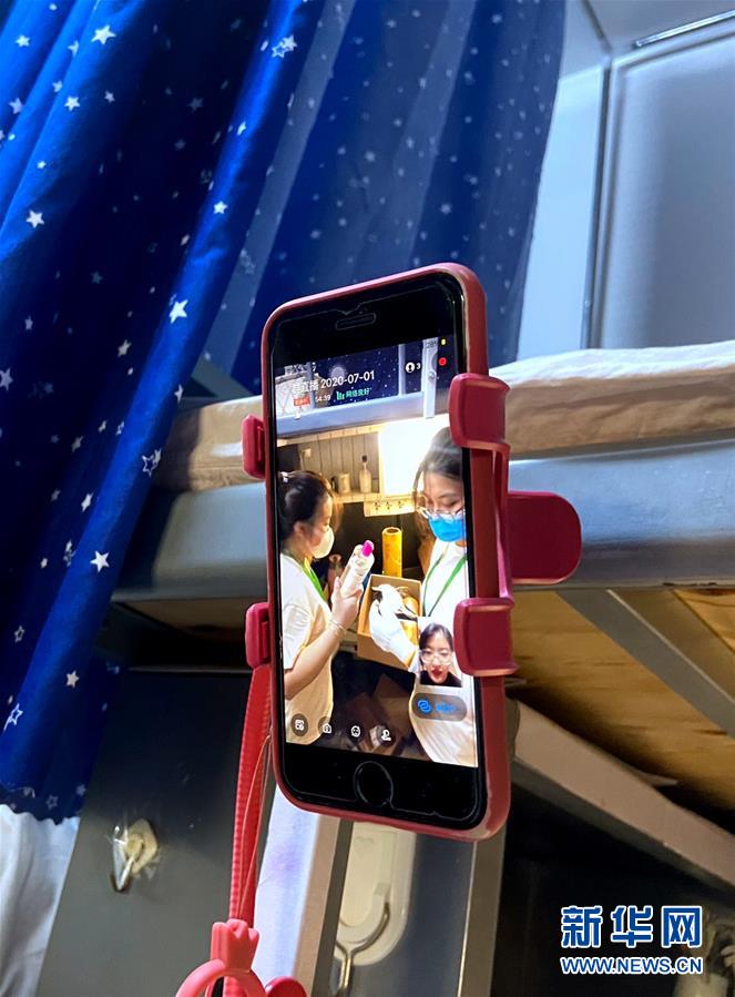 7月1日,在北理工學(xué)生宿舍,輔導(dǎo)員通過手機視頻方式,核對畢業(yè)生的個人物品。6月29日起,北京理工大學(xué)教職員工開始為2020屆6000多名需要打包的畢業(yè)生集中進行行李打包、郵寄和留置物品存放工作。經(jīng)過提前與畢業(yè)生“一對一”溝通,老師們耐心細(xì)致地通過手機“直播”打包行李的全過程,與每一個同學(xué)認(rèn)真核對其個人物品,細(xì)心收納擺放、整理密封、搬運寄送,讓不能返校的畢業(yè)生們安心、放心。新華社記者魏夢佳攝