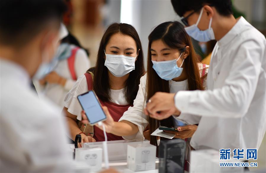 7月1日,顧客在海口日月廣場(chǎng)免稅店選購(gòu)手機(jī)等電子消費(fèi)產(chǎn)品。當(dāng)日,海南開始實(shí)施調(diào)整后的離島免稅購(gòu)物政策。海南離島旅客每年每人免稅購(gòu)物額度提高至10萬元,電子消費(fèi)產(chǎn)品等7類新增商品開售。新華社記者郭程攝