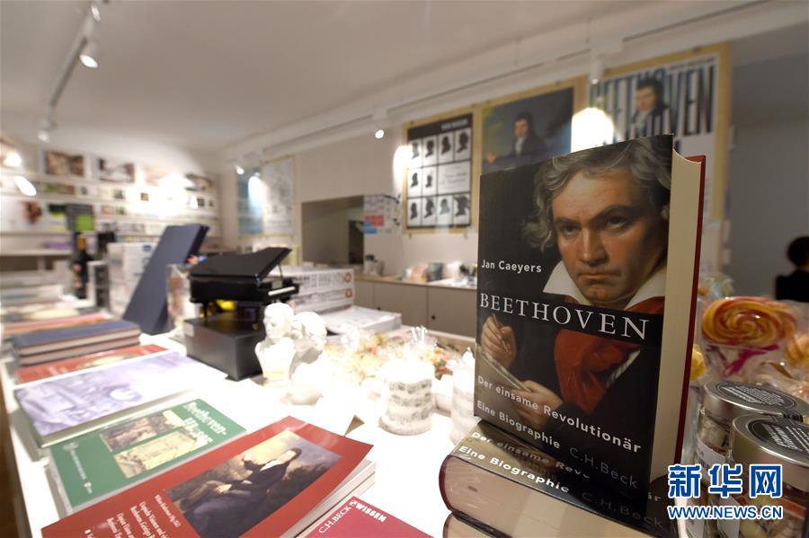 7月2日,奧地利維也納的貝多芬博物館紀念品商店展示關(guān)于貝多芬的書籍。因疫情關(guān)閉的奧地利維也納貝多芬博物館7月1日起再次開門迎客。該博物館是貝多芬在維也納的故居之一,貝多芬曾在此長期居住并創(chuàng)作了部分經(jīng)典的音樂作品。2020年是貝多芬誕辰250周年。新華社記者 郭晨 攝