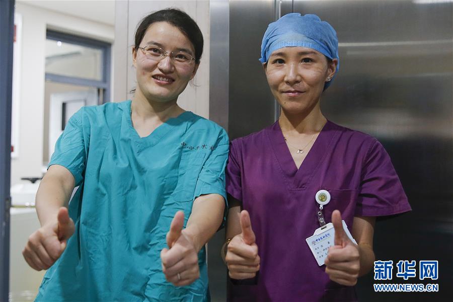 7月3日,中日友好醫(yī)院檢驗科新冠核酸檢測實驗室的閆克芹(左)和張鑫在短暫午休時脫下了防護服。新華社記者張玉薇攝