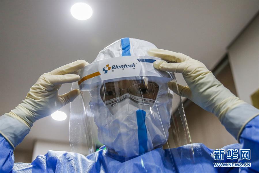 7月3日,中日友好醫(yī)院檢驗科新冠核酸檢測實驗室的檢驗人員閆克芹在進入污染區(qū)前穿戴防護裝備。新華社記者張玉薇攝