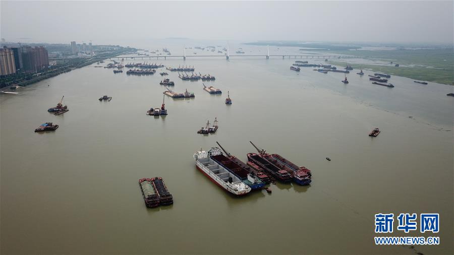 7月5日拍攝的岳陽(yáng)洞庭湖主航道(無(wú)人機(jī)照片)。受持續(xù)強(qiáng)降雨和上游來(lái)水影響,洞庭湖城陵磯水位持續(xù)上漲。水文監(jiān)測(cè)數(shù)據(jù)顯示,截至7月5日16時(shí),洞庭湖城陵磯水位達(dá)到32.75米,超警戒水位0.25米。當(dāng)?shù)胤姥床块T(mén)正嚴(yán)密監(jiān)控水情雨情,備好防汛物資并加強(qiáng)應(yīng)急值守,力爭(zhēng)安全度汛。新華社記者陳澤國(guó)攝