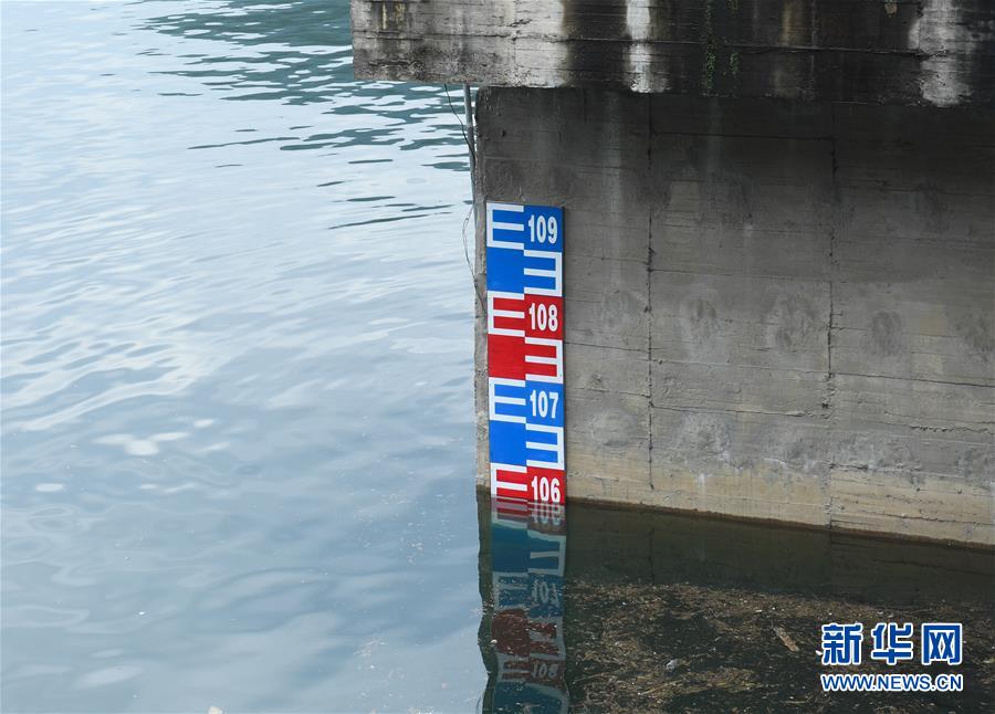 7月6日拍攝的新安江水庫的水位標(biāo)尺。受連續(xù)強(qiáng)降雨影響,位于浙江建德的新安江水庫水位持續(xù)上漲。據(jù)浙江省水利廳發(fā)布的數(shù)據(jù),截至7月6日14時,水庫水位上漲至106.54米,超汛限水位0.04米,且仍在上漲中。為確保水庫防洪安全、合理利用水資源,新安江水庫預(yù)計于7月7日開啟泄洪閘泄洪。新華社記者翁忻旸攝