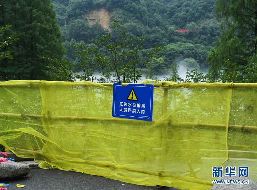 新安江畔的步道已被封閉(7月6日攝)。受連續(xù)強(qiáng)降雨影響,位于浙江建德的新安江水庫水位持續(xù)上漲。據(jù)浙江省水利廳發(fā)布的數(shù)據(jù),截至7月6日14時,水庫水位上漲至106.54米,超汛限水位0.04米,且仍在上漲中。為確保水庫防洪安全、合理利用水資源,新安江水庫預(yù)計于7月7日開啟泄洪閘泄洪。新華社記者翁忻旸攝