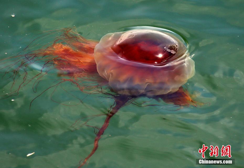 當?shù)貢r間2020年6月25日,美國馬薩諸塞州,美國南部海岸近期出現(xiàn)大量獅鬃水母。圖片來源:視覺中國