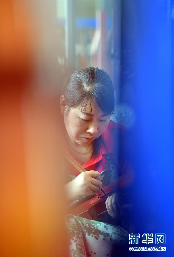 工人在河南駐馬店市確山縣提琴產(chǎn)業(yè)園提琴生產(chǎn)車(chē)間工作(7月3日攝)。新華社記者李嘉南攝