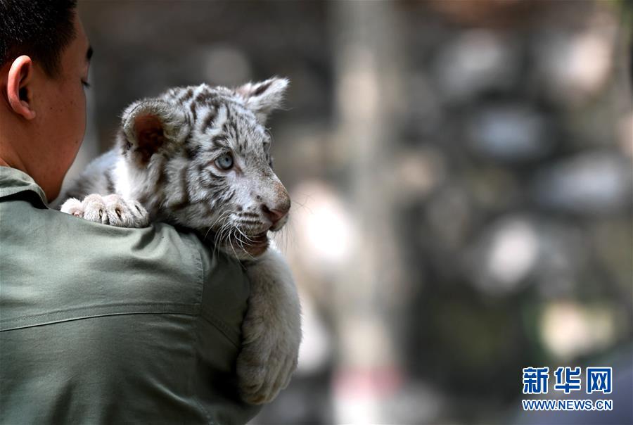 7月13日,工作人員將“妞妞”帶回飼養(yǎng)室。河北石家莊市動物園的孟加拉白虎寶寶“妞妞”只有3個月大,由于虎媽媽經(jīng)驗不足,“妞妞”一出生便由動物園工作人員按科學(xué)方法人工飼養(yǎng)。目前,在飼養(yǎng)員的精心照料下,“妞妞”正在茁壯成長。新華社記者 王曉 攝