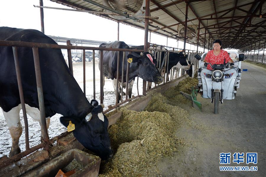 7月11日,河北省清河縣永興奶牛養(yǎng)殖場的工人在給奶牛喂食。近年來,河北省清河縣將扶貧工作與現(xiàn)代農(nóng)業(yè)結(jié)合,以龍頭企業(yè)為引領(lǐng),成立合作社,鼓勵貧困戶利用扶貧資金入股奶牛養(yǎng)殖場,幫助他們常年獲得穩(wěn)定收益。同時,貧困戶農(nóng)閑時還可到產(chǎn)業(yè)園區(qū)打工,既拿股金,又掙薪金,實現(xiàn)“造血式”脫貧。新華社記者 牟宇 攝
