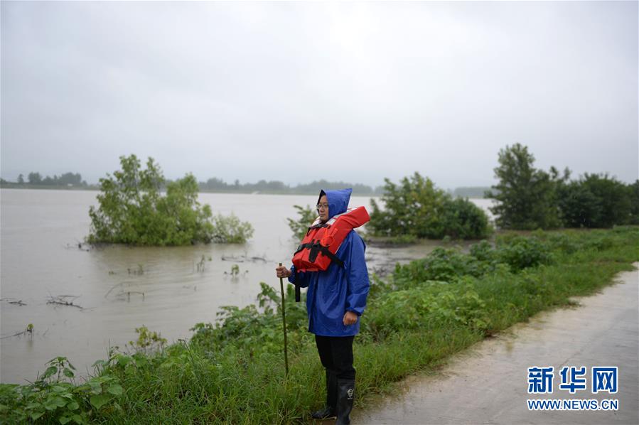 7月16日,鐵銅鄉(xiāng)新豐村的抗洪搶險(xiǎn)隊(duì)員鮑大友(左)和隊(duì)友在圩堤上巡堤查險(xiǎn)。受長(zhǎng)江持續(xù)高水位影響,安徽省樅陽(yáng)縣的鐵銅鄉(xiāng)江心洲已于近日將江心洲上的居民轉(zhuǎn)移安置,而包括搶險(xiǎn)隊(duì)員、鄉(xiāng)鎮(zhèn)干部、水利工程師等在內(nèi)的近300人“留守”在江心洲上巡堤查險(xiǎn),守護(hù)家園。鐵銅鄉(xiāng)位于長(zhǎng)江江心洲上,有4個(gè)行政村52個(gè)村民組,耕地面積12000多畝。新華社記者黃博涵攝