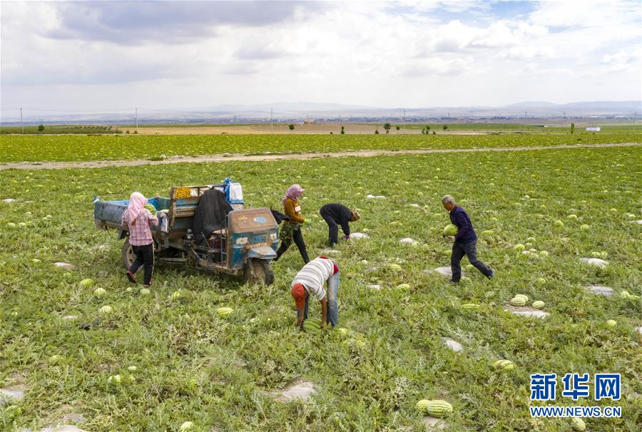 7月16日,在寧夏中衛(wèi)市香山鄉(xiāng)硒砂瓜萬(wàn)畝示范基地,瓜農(nóng)在采收硒砂瓜。近日,寧夏中衛(wèi)市迎來(lái)硒砂瓜豐收季。硒砂瓜是中衛(wèi)市的特色農(nóng)產(chǎn)品,近年來(lái),當(dāng)?shù)夭扇〖夹g(shù)創(chuàng)新、規(guī)?;N植、休耕輪作等多項(xiàng)舉措,讓硒砂瓜種植成為當(dāng)?shù)剞r(nóng)民增收致富的重要產(chǎn)業(yè)。據(jù)了解,今年中衛(wèi)市硒砂瓜種植面積為69.7萬(wàn)畝。新華社記者楊植森攝