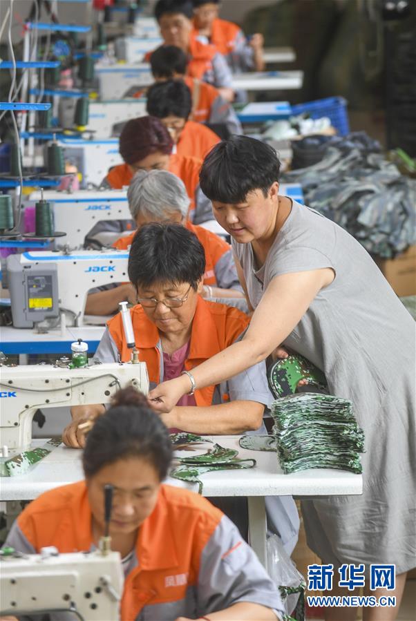 7月16日,在河北省深州市高古莊鎮(zhèn)鳳凰池村扶貧車間,馬京娜指導(dǎo)車間工人加工帽子。馬京娜是河北省深州市高古莊鎮(zhèn)鳳凰池村的致富能手。在市、鄉(xiāng)、村各級(jí)部門的大力支持下,馬京娜創(chuàng)辦扶貧車間,為建檔立卡貧困戶設(shè)立崗位,帶領(lǐng)貧困戶脫貧增收。目前,馬京娜的扶貧車間提供就業(yè)崗位30多個(gè)。新華社記者李曉果攝