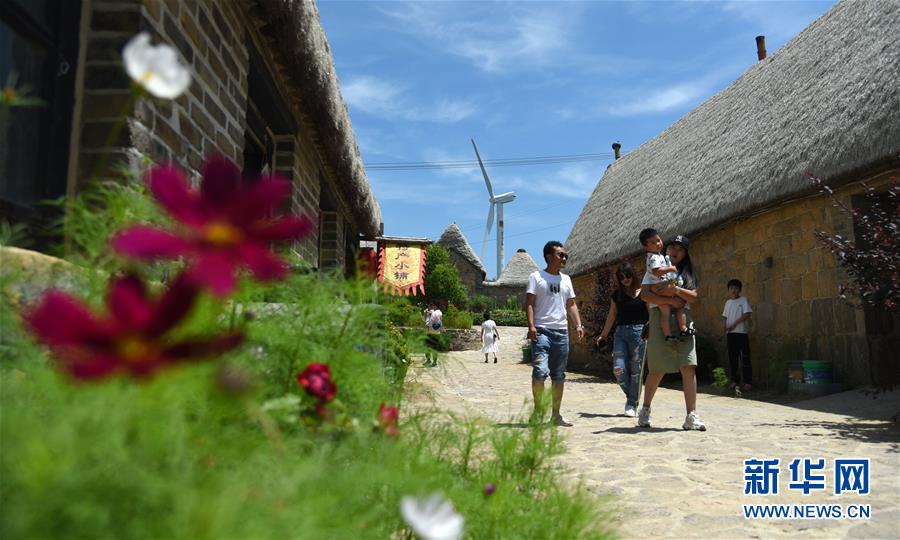 7月17日,游客在以傳統(tǒng)海草民居聞名的山東榮成東楮島村觀光。近年來,山東省榮成市重點(diǎn)發(fā)展特色海洋旅游產(chǎn)業(yè),打造眾多國家級(jí)海洋牧場,保留修復(fù)傳統(tǒng)海草民居,吸引游客前來觀光體驗(yàn)。如今特色海洋旅游已逐漸成為榮成經(jīng)濟(jì)發(fā)展新的增長點(diǎn)。新華社記者王凱攝