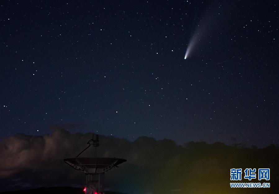7月18日晚,在明安圖觀測(cè)基地,尼歐懷茲彗星劃過(guò)天際。7月18日晚至19日凌晨,在位于內(nèi)蒙古錫林郭勒盟正鑲白旗境內(nèi)的國(guó)家天文臺(tái)明安圖觀測(cè)基地,尼歐懷茲彗星劃過(guò)天際。在明安圖觀測(cè)基地內(nèi),排列著100面白色的拋物面天線(xiàn)。這個(gè)龐大的天線(xiàn)陣列便是草原“天眼”——明安圖射電頻譜日像儀。草原“天眼”持續(xù)接收太陽(yáng)射電輻射,然后由科研人員進(jìn)行數(shù)據(jù)分析研究,對(duì)空間環(huán)境監(jiān)測(cè)、太陽(yáng)活動(dòng)預(yù)報(bào)均有重要作用。新華社記者連振攝