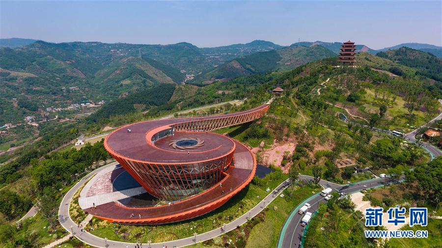 這是6月15日拍攝的四川省成都市龍泉山城市森林公園丹景山觀景臺(tái)(無人機(jī)照片)。新華社記者王曦?cái)z