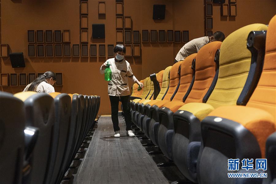 7月20日,一家影院的工作人員在觀眾散場(chǎng)后進(jìn)行消殺工作。當(dāng)日,在各項(xiàng)疫情防控措施有效落實(shí)到位的前提下,武漢市部分電影院恢復(fù)開放。新華社記者熊琦攝