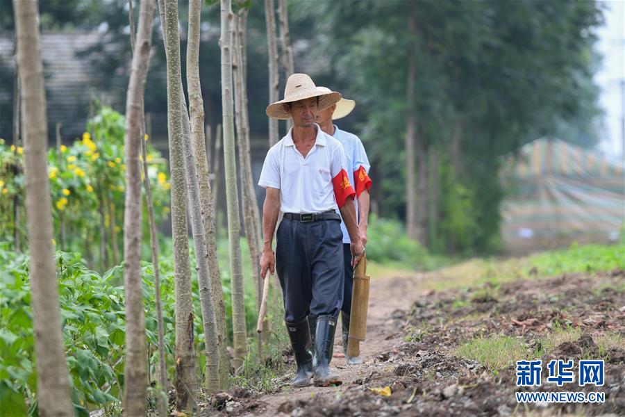 7月20日,在永固垸西線防洪大堤,工作人員巡堤查險。新華社記者陳澤國攝