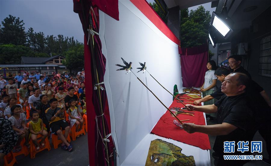 當(dāng)日,浙江省杭州市余杭區(qū)塘棲鎮(zhèn)河西埭村“衛(wèi)家班皮影戲”劇團的藝人們來到余杭區(qū)喬司街道和睦橋村進行演出,這是近期杭州市余杭區(qū)夏季鄉(xiāng)村“文化走親”的重要活動之一。今年6月開始,杭州市余杭區(qū)塘棲鎮(zhèn)組織多支文化表演團體以“文化走親”的形式,先后送戲到余杭區(qū)近20個鄉(xiāng)村文化禮堂,豐富夏日鄉(xiāng)村百姓文化生活。在余杭塘棲一帶,歷史上曾活躍著一支以演出皮影戲出名的民間戲班子,號稱“衛(wèi)家班”。2016年,塘棲鎮(zhèn)河西埭村在文化禮堂的建設(shè)過程中,將當(dāng)?shù)貍鹘y(tǒng)的“衛(wèi)家班皮影戲”作為“一村一品”特色項目進行了搶救性保護。2018年12月,“衛(wèi)家班皮影戲”被列入杭州市非物質(zhì)文化遺產(chǎn)代表性項目名錄。新華社記者徐昱攝