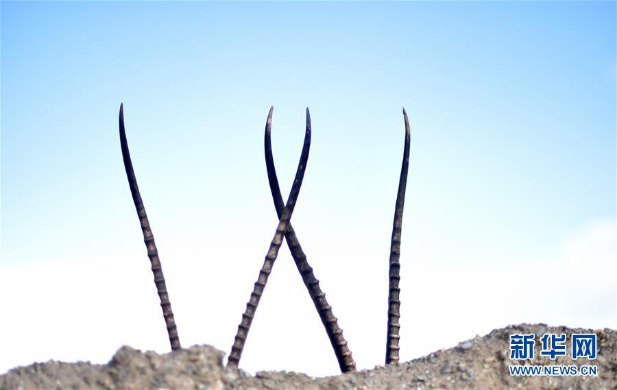 7月17日在西藏尼瑪縣榮瑪鄉(xiāng)附近拍攝的藏羚羊公羊的角。2000年,西藏羌塘自然保護區(qū)晉升為國家級自然保護區(qū)。20年來,經過西藏各級各部門的不懈努力,羌塘國家級自然保護區(qū)內的重點保護野生動物種群數(shù)量明顯增加,其中,藏羚羊種群數(shù)量由原來的5至7萬只,恢復到目前的15萬只以上。羌塘國家級自然保護區(qū)核心地帶的西藏尼瑪縣榮瑪鄉(xiāng)附近,目前就有近6萬只藏羚羊。新華社記者覺果攝