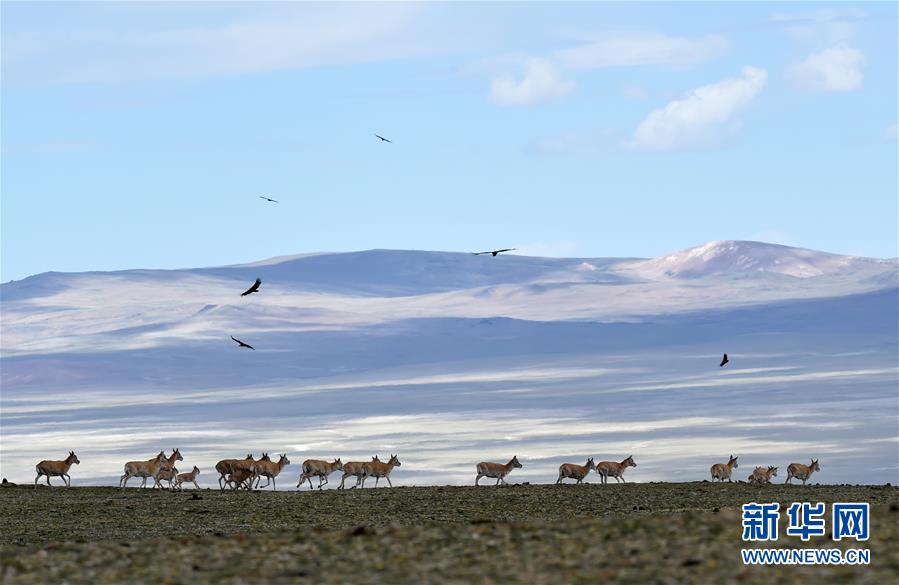 7月18日在西藏尼瑪縣榮瑪鄉(xiāng)附近拍攝的藏羚羊。2000年,西藏羌塘自然保護區(qū)晉升為國家級自然保護區(qū)。20年來,經過西藏各級各部門的不懈努力,羌塘國家級自然保護區(qū)內的重點保護野生動物種群數(shù)量明顯增加,其中,藏羚羊種群數(shù)量由原來的5至7萬只,恢復到目前的15萬只以上。羌塘國家級自然保護區(qū)核心地帶的西藏尼瑪縣榮瑪鄉(xiāng)附近,目前就有近6萬只藏羚羊。新華社記者覺果攝