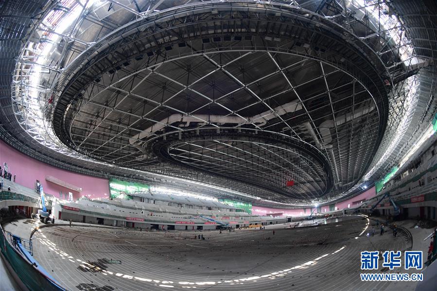 這是7月22日在北京拍攝的正在施工的國家速滑館內景。新華社記者張晨霖攝