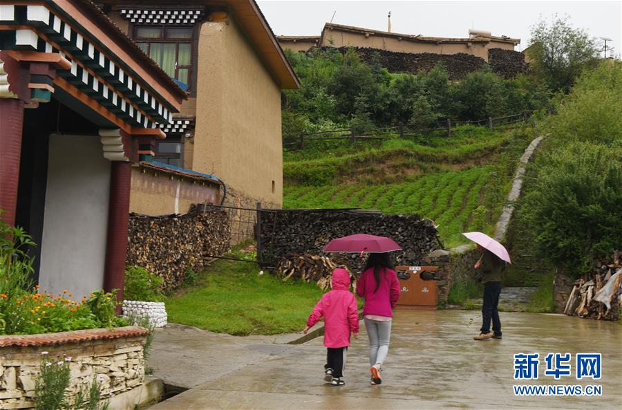 雨中踏訪,靜謐、安詳、干凈是神座村帶給記者的第一印象??諝庖卜路鹗莿倓偳逑催^,沁人心脾。一幢幢藏家土黃色泥墻民居,面朝茂密的森林,坐落在鮮花盛開的草場上。輕輕敲開藏族群眾拉青家的門,48歲的拉青便領(lǐng)著記者參觀他家的民宿。他告訴記者,2017年,他賣掉家里的367頭牦牛,收入200多萬元,用其中一半的錢建起氣派的民居,開起客棧。第二年,客棧收入就超過15萬元,加上售賣土特產(chǎn)收入7萬多元,他家四口人當(dāng)年收入超過22萬元。在他帶領(lǐng)下,先后有10多戶牧民賣牛下山辦民宿,破解了神座村過度放牧給生態(tài)環(huán)境造成壓力的難題。