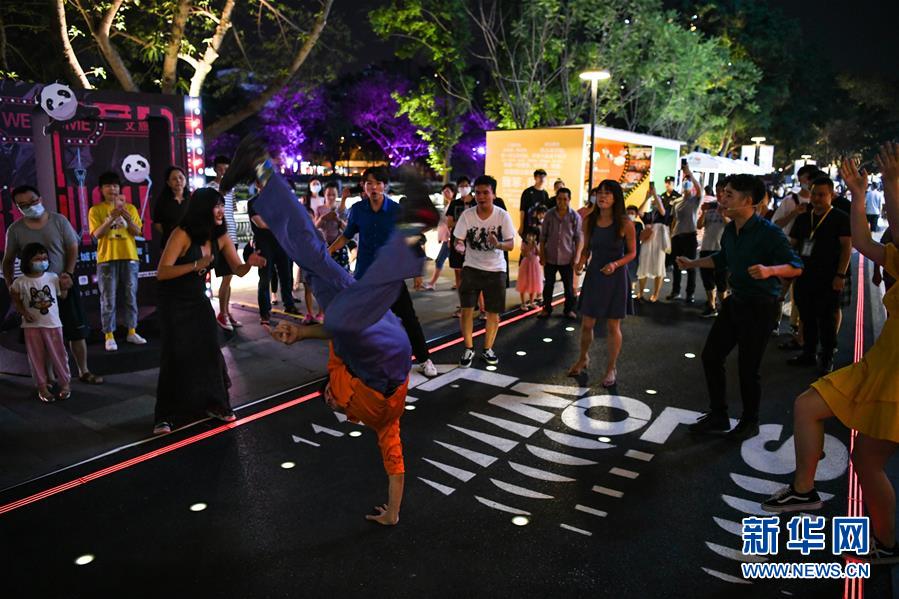7月23日晚,在成都市成華區(qū)望平街濱河路的天府文創(chuàng)大集市上,游人在文化墻前錄制視頻。近日,天府文創(chuàng)大集市活動(dòng)在成都全市范圍內(nèi)開(kāi)展,以成都原創(chuàng)IP為主的優(yōu)秀文創(chuàng)產(chǎn)品集體亮相夜幕下的成都街頭。據(jù)了解,本次天府文創(chuàng)大集市共分為七個(gè)會(huì)場(chǎng),以“讀書、納涼、賞文創(chuàng)——盛夏中的新消費(fèi)”為主題,將持續(xù)到7月26日。新華社記者 王曦 攝