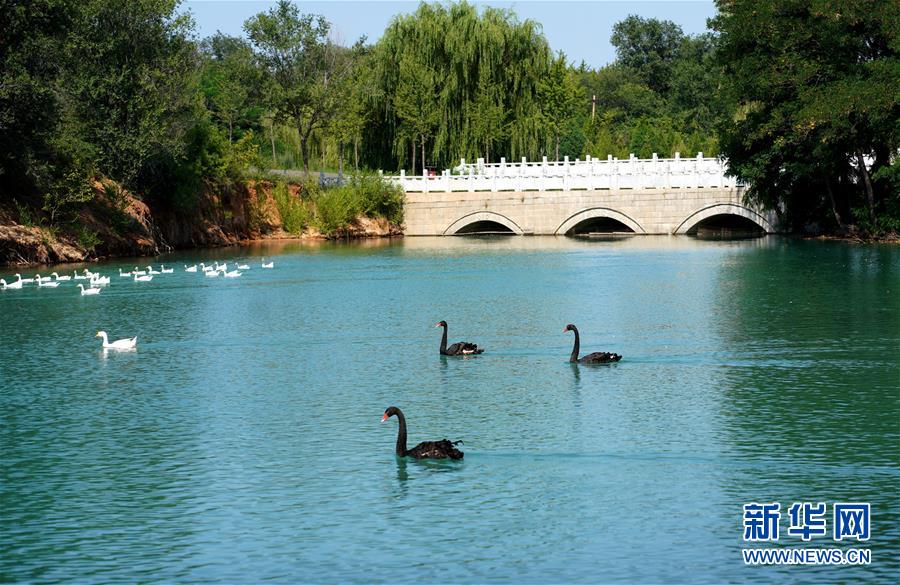 這是7月26日在欒卸村湖區(qū)拍攝到的天鵝。盛夏,位于太行山區(qū)的河北省沙河市欒卸村滿目蔥蘢,山水、田園、民居構(gòu)成一幅美麗鄉(xiāng)村圖景。新華社記者 牟宇 攝