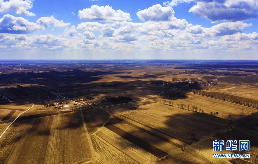 吉林省松原市長(zhǎng)嶺縣光明鄉(xiāng)完成備耕整地工作后等待耕種的玉米地(4月23日攝,無(wú)人機(jī)照片)。新華社記者 許暢 攝