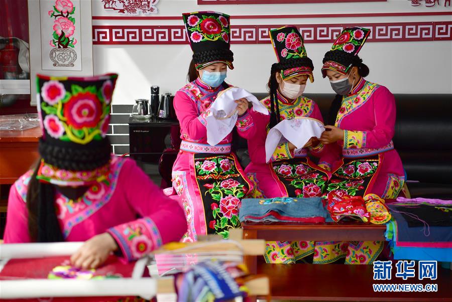 在陜西寧強縣大安鎮(zhèn)江林安置點一家羌族刺繡文化公司的傳習(xí)基地內(nèi),學(xué)員在進行練習(xí)(3月13日攝)。陜南地區(qū)地處秦巴山區(qū),是陜西脫貧攻堅的主戰(zhàn)場。近年來,陜南各縣區(qū)因地制宜、精準施策,通過發(fā)展社區(qū)工廠、特色種植、旅游扶貧、技能培訓(xùn)、電商帶貨等措施,促進多種產(chǎn)業(yè)發(fā)展,助力農(nóng)民增收。新華社記者邵瑞攝