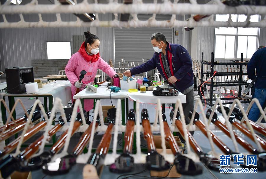 在陜西漢中市城固縣博望街道辦事處江灣社區(qū)一家樂器廠內(nèi),工人在制作貝斯(3月12日攝)。陜南地區(qū)地處秦巴山區(qū),是陜西脫貧攻堅的主戰(zhàn)場。近年來,陜南各縣區(qū)因地制宜、精準施策,通過發(fā)展社區(qū)工廠、特色種植、旅游扶貧、技能培訓(xùn)、電商帶貨等措施,促進多種產(chǎn)業(yè)發(fā)展,助力農(nóng)民增收。新華社記者邵瑞攝