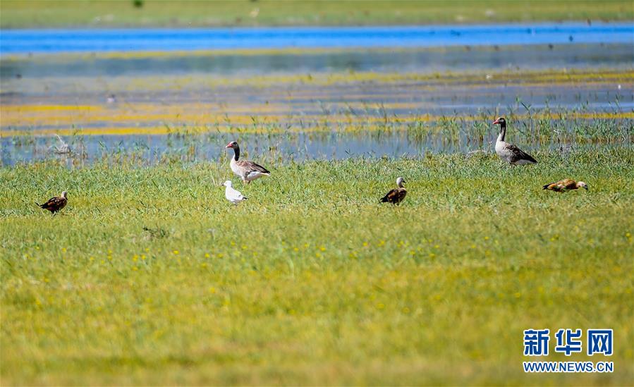 7月28日,灰雁和遺鷗在桃力廟—阿拉善灣海子覓食。鄂爾多斯?jié)竦匚挥趲觳箭R沙漠、毛烏素沙地接壤地帶,2002年被列入國際重要濕地名錄。從2006年開始,由于濕地湖面萎縮、湖心島消失,在此筑巢繁殖的世界瀕危物種遺鷗幾近消失。近年來,當(dāng)?shù)夭扇《喾N治理措施,濕地生態(tài)環(huán)境逐步好轉(zhuǎn)。2019年起,濕地內(nèi)的桃力廟—阿拉善灣海子迎來遺鷗大規(guī)模“回歸”。如今,40多種鳥類在此棲息,鄂爾多斯?jié)竦刂匦鲁蔀轼B類的樂園。新華社記者彭源攝