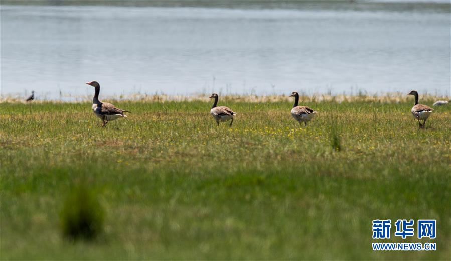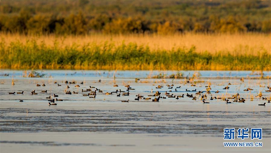 7月28日,灰雁在桃力廟—阿拉善灣海子覓食。鄂爾多斯?jié)竦匚挥趲?kù)布齊沙漠、毛烏素沙地接壤地帶,2002年被列入國(guó)際重要濕地名錄。從2006年開始,由于濕地湖面萎縮、湖心島消失,在此筑巢繁殖的世界瀕危物種遺鷗幾近消失。近年來,當(dāng)?shù)夭扇《喾N治理措施,濕地生態(tài)環(huán)境逐步好轉(zhuǎn)。2019年起,濕地內(nèi)的桃力廟—阿拉善灣海子迎來遺鷗大規(guī)?!盎貧w”。如今,40多種鳥類在此棲息,鄂爾多斯?jié)竦刂匦鲁蔀轼B類的樂園。新華社記者連振攝