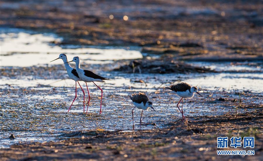 7月28日,長腳鷸在桃力廟—阿拉善灣海子覓食。鄂爾多斯?jié)竦匚挥趲觳箭R沙漠、毛烏素沙地接壤地帶,2002年被列入國際重要濕地名錄。從2006年開始,由于濕地湖面萎縮、湖心島消失,在此筑巢繁殖的世界瀕危物種遺鷗幾近消失。近年來,當?shù)夭扇《喾N治理措施,濕地生態(tài)環(huán)境逐步好轉(zhuǎn)。2019年起,濕地內(nèi)的桃力廟—阿拉善灣海子迎來遺鷗大規(guī)模“回歸”。如今,40多種鳥類在此棲息,鄂爾多斯?jié)竦刂匦鲁蔀轼B類的樂園。新華社記者連振攝