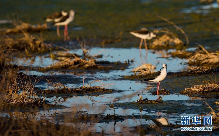 7月28日,長腳鷸在桃力廟—阿拉善灣海子覓食。鄂爾多斯?jié)竦匚挥趲觳箭R沙漠、毛烏素沙地接壤地帶,2002年被列入國際重要濕地名錄。從2006年開始,由于濕地湖面萎縮、湖心島消失,在此筑巢繁殖的世界瀕危物種遺鷗幾近消失。近年來,當?shù)夭扇《喾N治理措施,濕地生態(tài)環(huán)境逐步好轉(zhuǎn)。2019年起,濕地內(nèi)的桃力廟—阿拉善灣海子迎來遺鷗大規(guī)?!盎貧w”。如今,40多種鳥類在此棲息,鄂爾多斯?jié)竦刂匦鲁蔀轼B類的樂園。新華社記者連振攝