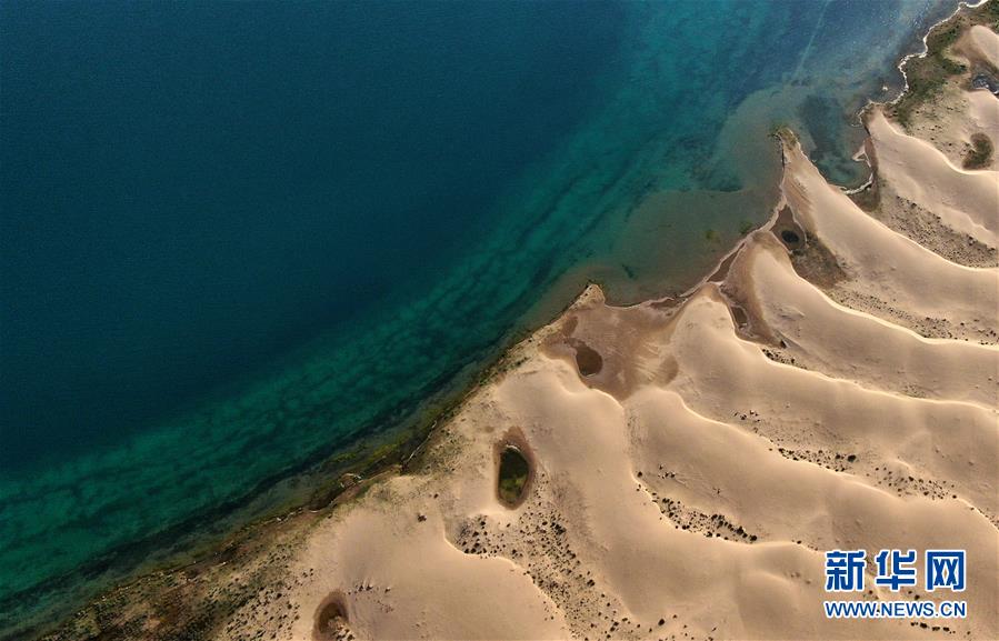 這是青海湖沙島一角(7月28日攝,無(wú)人機(jī)照片)。盛夏傍晚,位于青海湖東北部的沙島,島內(nèi)湖泊星羅棋布,沙丘連綿起伏,風(fēng)景別致。金沙與湖水掩映,在陽(yáng)光的勾勒下形成一幅美麗的畫(huà)卷。新華社記者張宏祥攝