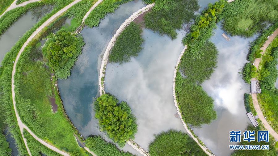 六盤(pán)水明湖國(guó)家濕地公園風(fēng)景(無(wú)人機(jī)照片,6月17日攝)。新華社記者陶亮攝