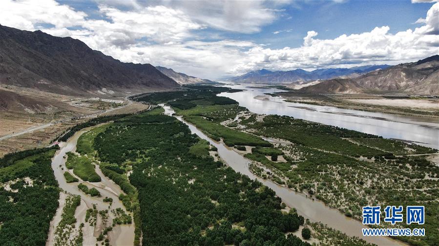 雅魯藏布江岸邊的綠樹(6月27日攝,無人機照片)。新華社記者晉美多吉攝