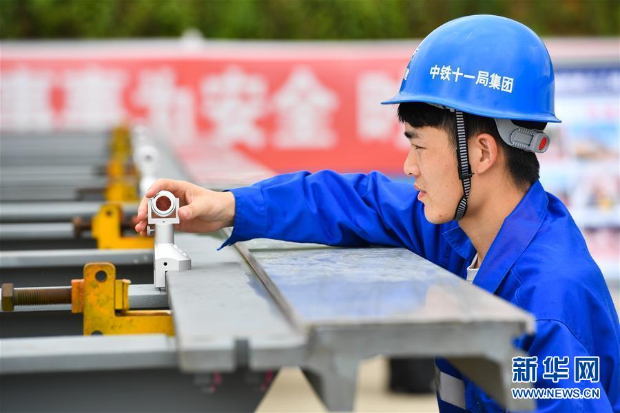 8月5日,中鐵十一局技術員在清遠磁浮軌排基地的試驗梁軌排上放置精調(diào)棱鏡。目前,廣東首條中低速磁浮線——清遠磁浮旅游專線項目建設有序推進。廣東清遠磁浮旅游專線項目全長約38公里,分兩期建設。首期全長8.014公里,將在9月份開始鋪軌,預計在2020年底實現(xiàn)主體工程全面完工。新華社記者劉大偉攝