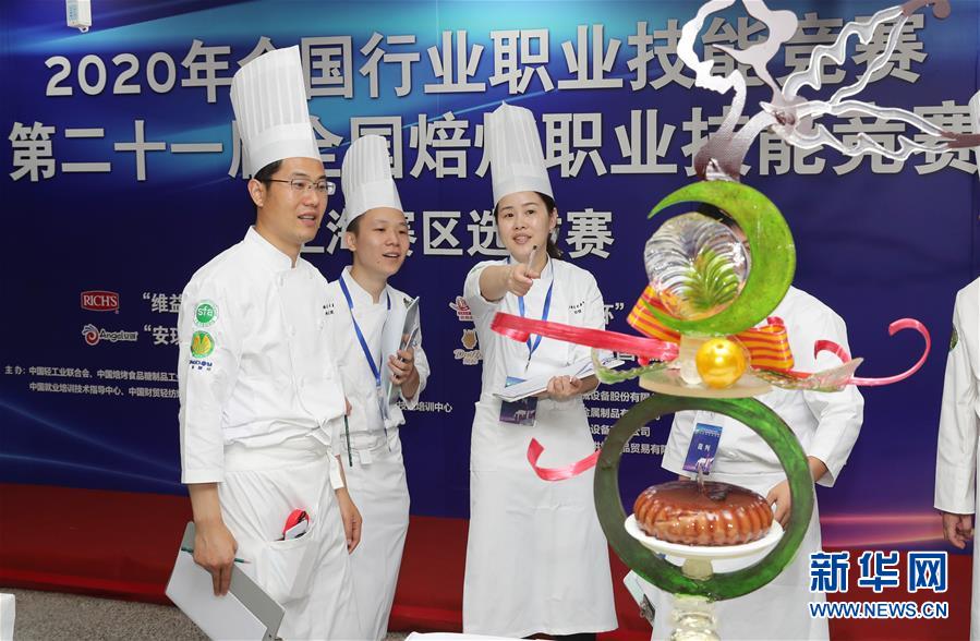 8月5日,評(píng)委在作品展示區(qū)為選手的作品打分。當(dāng)日,第二十一屆全國焙烤職業(yè)技能競(jìng)賽上海賽區(qū)選拔賽,在上海市現(xiàn)代食品職業(yè)技能培訓(xùn)中心舉行,來自上海、江蘇、浙江等地的近60名焙烤行業(yè)技師,在藝術(shù)面包、傳統(tǒng)糕點(diǎn)、糖藝和藝術(shù)巧克力等項(xiàng)目中進(jìn)行比拼,在充滿焙烤香氣的賽場(chǎng)上展現(xiàn)技藝。新華社記者方喆攝