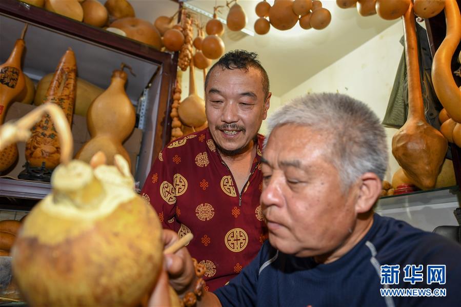 8月5日,侯景偉(左)向徒弟金志勇傳授技藝。今年55歲的吉林四平人侯景偉自幼與家人學(xué)習(xí)雕刻、烙畫藝術(shù)。經(jīng)過(guò)多年潛心研究,他將浮雕和烙畫工藝相結(jié)合,通過(guò)拋光、起稿、雕刻、烙燙、套色等十余道工藝,制作展現(xiàn)傳統(tǒng)文化、民俗故事的葫蘆工藝品。2020年,侯景偉被評(píng)為四平市非物質(zhì)文化遺產(chǎn)項(xiàng)目侯氏葫蘆雕刻烙畫代表性傳承人。他說(shuō):“希望有更多人加入到非遺傳承隊(duì)伍中,讓小葫蘆‘講’出更多民俗故事?!毙氯A社記者張楠攝