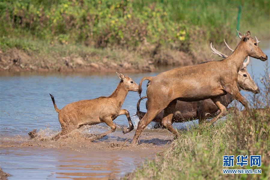 這是8月7日在東洞庭湖麋鹿和鳥類救治避難中心拍攝的麋鹿。位于湖南省岳陽市的東洞庭湖麋鹿和鳥類救治避難中心成立于2016年9月,占地400余畝,中心自建成后就承擔起東洞庭湖區(qū)域全部麋鹿的救援、醫(yī)治、康復和喂養(yǎng)任務。目前該中心共有14只麋鹿正在接受救助。新華社記者陳思汗攝