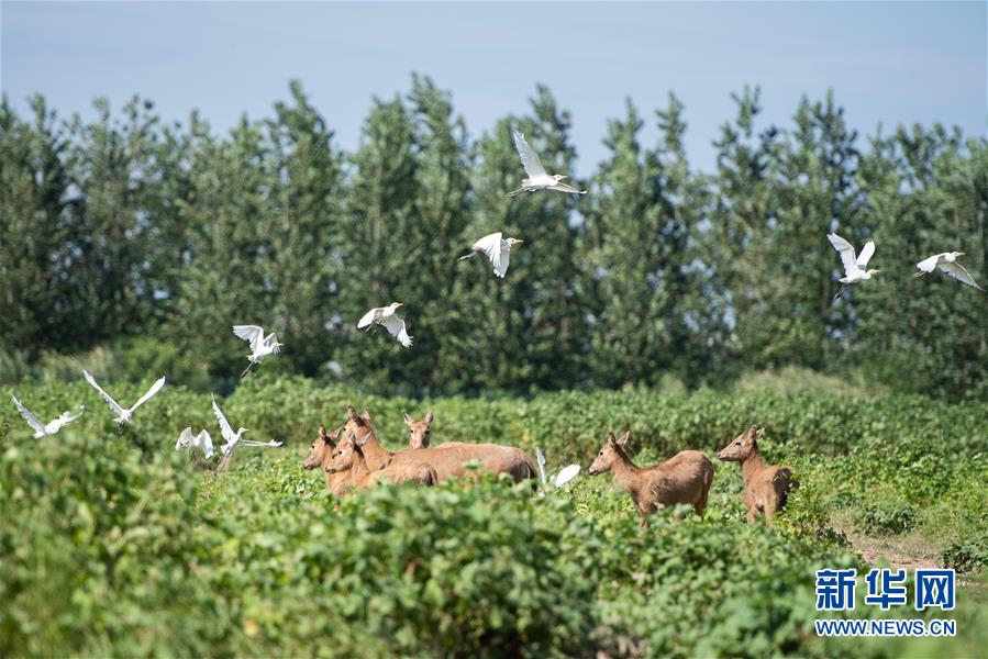 這是8月7日在東洞庭湖麋鹿和鳥(niǎo)類(lèi)救治避難中心拍攝的麋鹿和飛鳥(niǎo)。位于湖南省岳陽(yáng)市的東洞庭湖麋鹿和鳥(niǎo)類(lèi)救治避難中心成立于2016年9月,占地400余畝,中心自建成后就承擔(dān)起東洞庭湖區(qū)域全部麋鹿的救援、醫(yī)治、康復(fù)和喂養(yǎng)任務(wù)。目前該中心共有14只麋鹿正在接受救助。新華社記者陳思汗攝