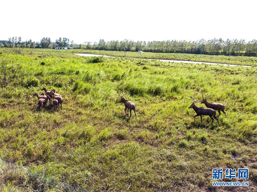 這是8月7日在東洞庭湖麋鹿和鳥類救治避難中心拍攝的麋鹿(無人機照片)。位于湖南省岳陽市的東洞庭湖麋鹿和鳥類救治避難中心成立于2016年9月,占地400余畝,中心自建成后就承擔(dān)起東洞庭湖區(qū)域全部麋鹿的救援、醫(yī)治、康復(fù)和喂養(yǎng)任務(wù)。目前該中心共有14只麋鹿正在接受救助。新華社記者李鑫攝