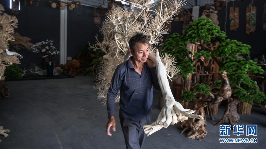8月7日,一名工人在永??h永安鄉(xiāng)根雕工藝品就業(yè)扶貧車(chē)間搬運(yùn)根雕半成品。2017年以來(lái),廣西桂林市永??h永安鄉(xiāng)通過(guò)幫扶返鄉(xiāng)青年創(chuàng)業(yè)的方式,建立起根雕工藝品就業(yè)扶貧車(chē)間,組織貧困群眾進(jìn)車(chē)間務(wù)工學(xué)藝,把當(dāng)?shù)刎S富的朽木和柑橘樹(shù)根枝資源利用起來(lái),加工成盆景、茶桌、吊燈等根雕工藝品,不僅幫助貧困群眾在家門(mén)口掌握一技之長(zhǎng),還讓他們?cè)诿撠氄焙髮?shí)現(xiàn)穩(wěn)定增收。新華社記者張愛(ài)林?jǐn)z