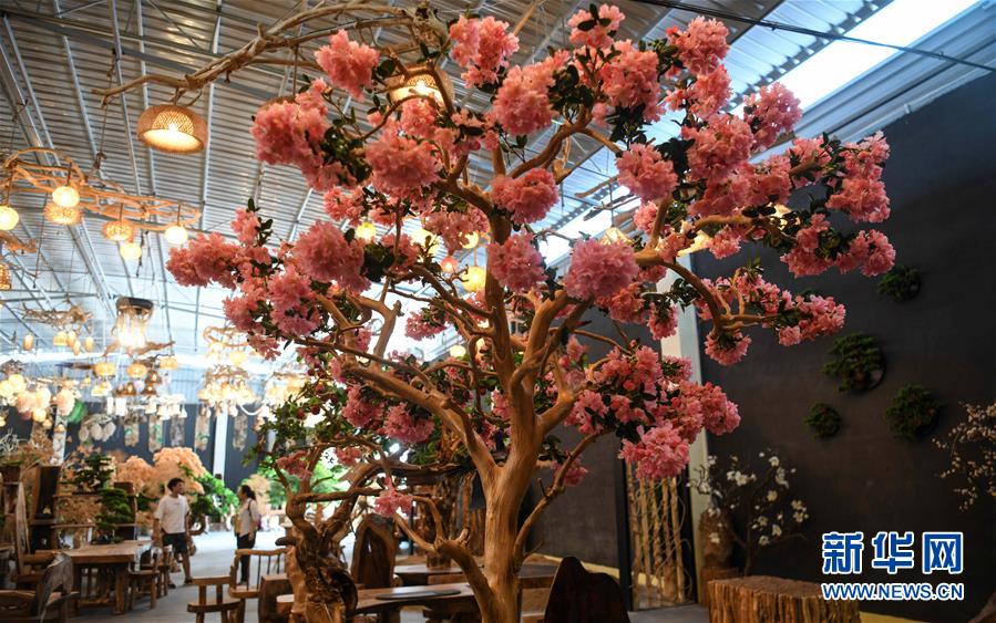這是8月7日在永福縣永安鄉(xiāng)根雕工藝品就業(yè)扶貧車間拍攝的根雕工藝品。2017年以來,廣西桂林市永??h永安鄉(xiāng)通過幫扶返鄉(xiāng)青年創(chuàng)業(yè)的方式,建立起根雕工藝品就業(yè)扶貧車間,組織貧困群眾進(jìn)車間務(wù)工學(xué)藝,把當(dāng)?shù)刎S富的朽木和柑橘樹根枝資源利用起來,加工成盆景、茶桌、吊燈等根雕工藝品,不僅幫助貧困群眾在家門口掌握一技之長,還讓他們在脫貧摘帽后實現(xiàn)穩(wěn)定增收。新華社記者張愛林?jǐn)z