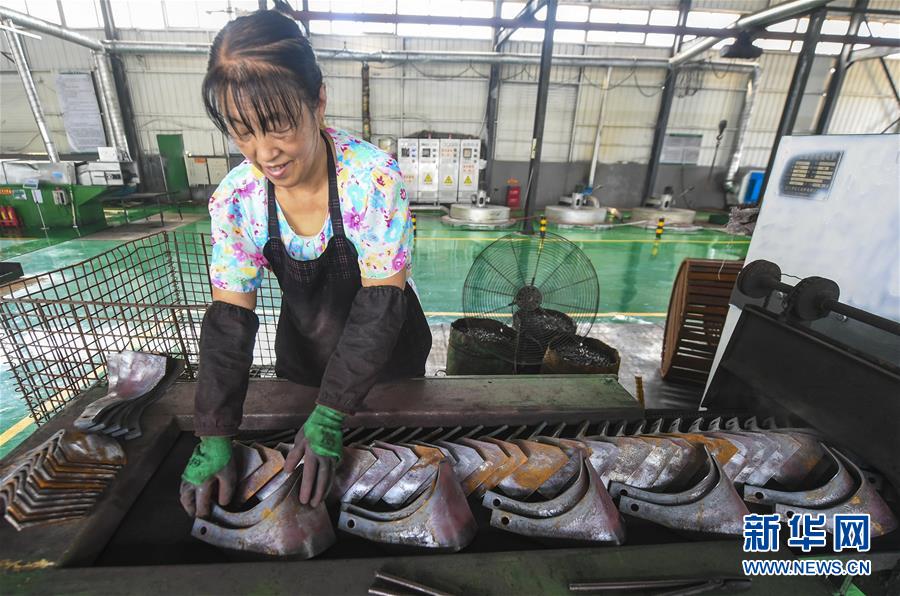 8月9日,河北大城縣南趙扶鎮(zhèn)一家旋耕機(jī)刀片生產(chǎn)企業(yè)員工在生產(chǎn)線上作業(yè)。河北省大城縣南趙扶鎮(zhèn)是該縣農(nóng)機(jī)配件行業(yè)傳統(tǒng)生產(chǎn)基地。疫情以來,南趙扶鎮(zhèn)引導(dǎo)企業(yè)做好風(fēng)險(xiǎn)防范,在農(nóng)機(jī)配件行業(yè)與世界各地客商及品牌開展方式多樣的合作,出口訂單不降反升。截至目前,該縣農(nóng)機(jī)配件行業(yè)出口總銷量達(dá)8000余萬元,較去年同期增長30%。新華社記者李曉果攝。
