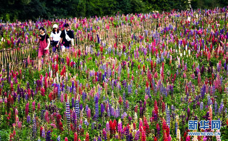 游客在陜西寶雞市太白縣咀頭鎮(zhèn)七里川村的魯冰花產(chǎn)業(yè)園內(nèi)觀光游覽(7月4日攝)。近年來,陜西地處秦巴山區(qū)的多個縣市結(jié)合當(dāng)?shù)刈匀粴夂驐l件打造特色花海景觀,利用“花海經(jīng)濟(jì)”助力脫貧攻堅和鄉(xiāng)村振興。新華社記者劉瀟攝。