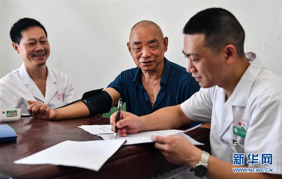 陜西安康市嵐皋縣佐龍鎮(zhèn)中心衛(wèi)生院的醫(yī)生在佐龍村對家庭醫(yī)生簽約服務(wù)對象進行慢性病隨訪(7月30日攝)。目前,嵐皋縣組建了71個鎮(zhèn)級家庭醫(yī)生服務(wù)團隊、15個縣級技術(shù)指導團隊,對貧困群眾開展重點人群免費體檢、慢病隨訪、健康生活指導、健康扶貧政策宣傳等簽約服務(wù)項目。新華社記者劉瀟攝。