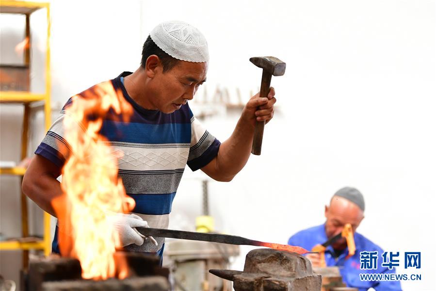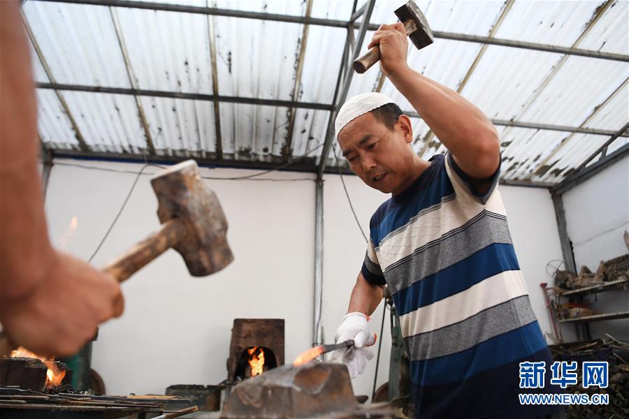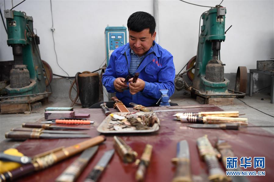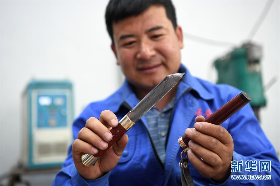 近年來(lái),甘肅省臨夏回族自治州積石山縣通過(guò)建設(shè)保安腰刀鍛制技藝扶貧車間和工藝坊等形式,積極發(fā)展特色非遺經(jīng)濟(jì),讓貧困群眾通過(guò)鍛制腰刀,傳承保護(hù)傳統(tǒng)技藝,拓寬收入渠道,助力脫貧致富。